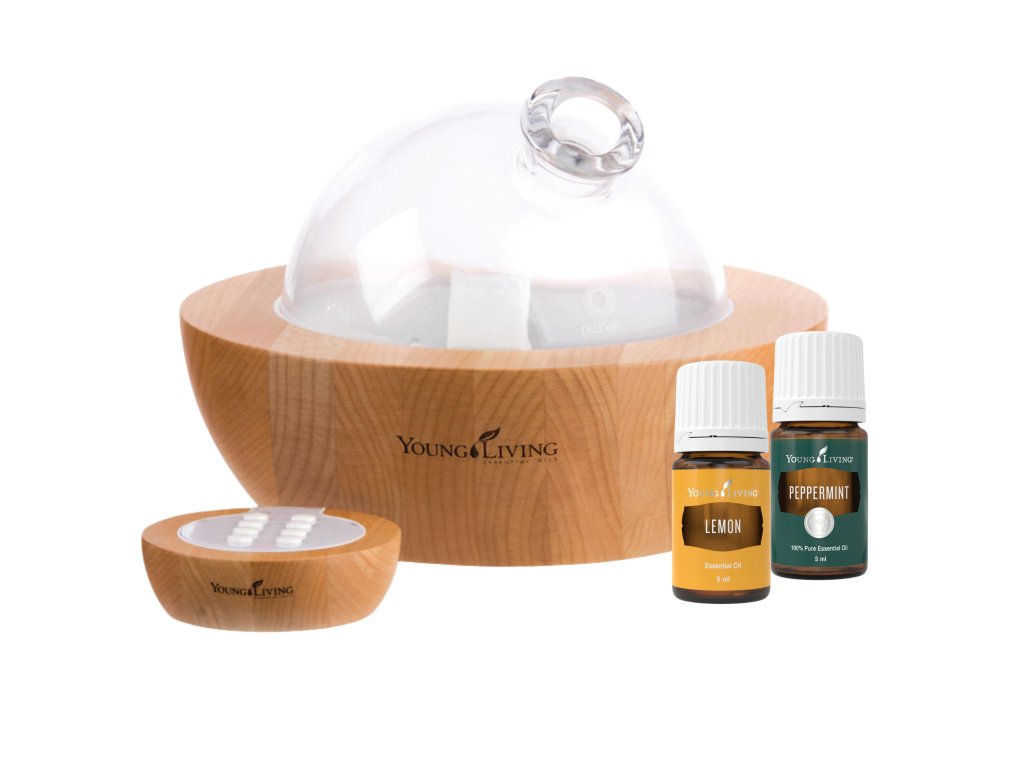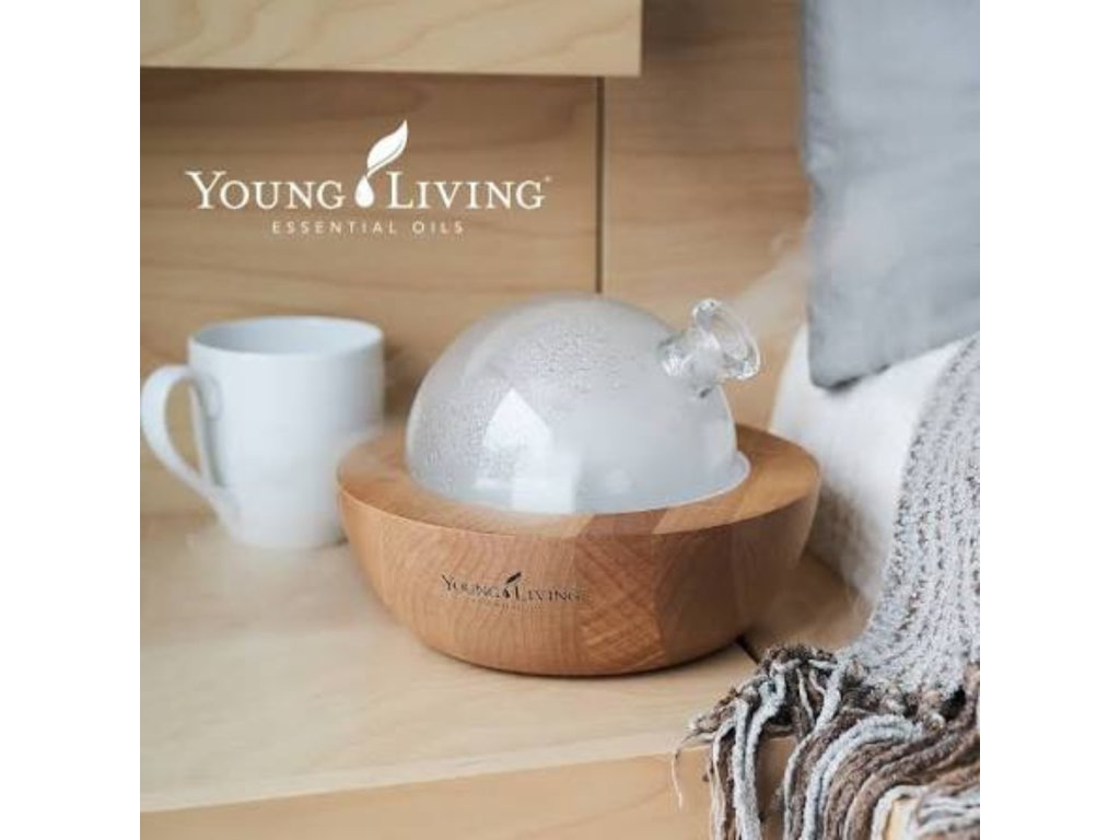 Difuzér Árie je ikonickým kouskem z kolekce Young Living — propojuje krásu přírodního dřeva, ručně foukaného skla a pokročilou ultrazvukovou technologii.