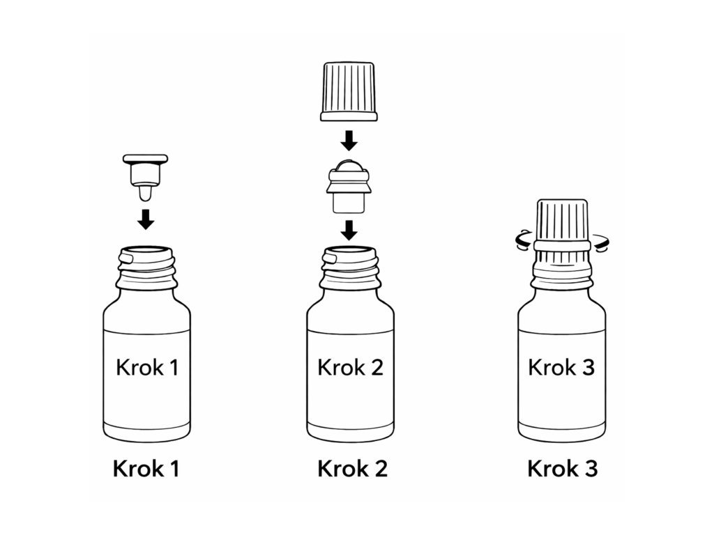 Sejměte původní kapátko z lahvičky, nasaďte kuličkový aplikátor a zašroubujte víčko. Olej aplikujte jemným přejetím po pokožce.