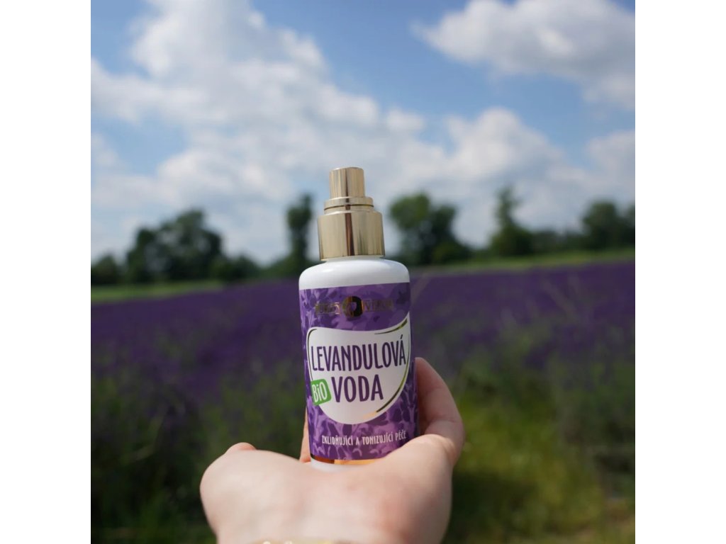 Bio Levandulová voda je přírodní květinová mlha, která kombinuje péči o pleť s aromatickým zážitkem.