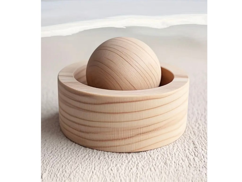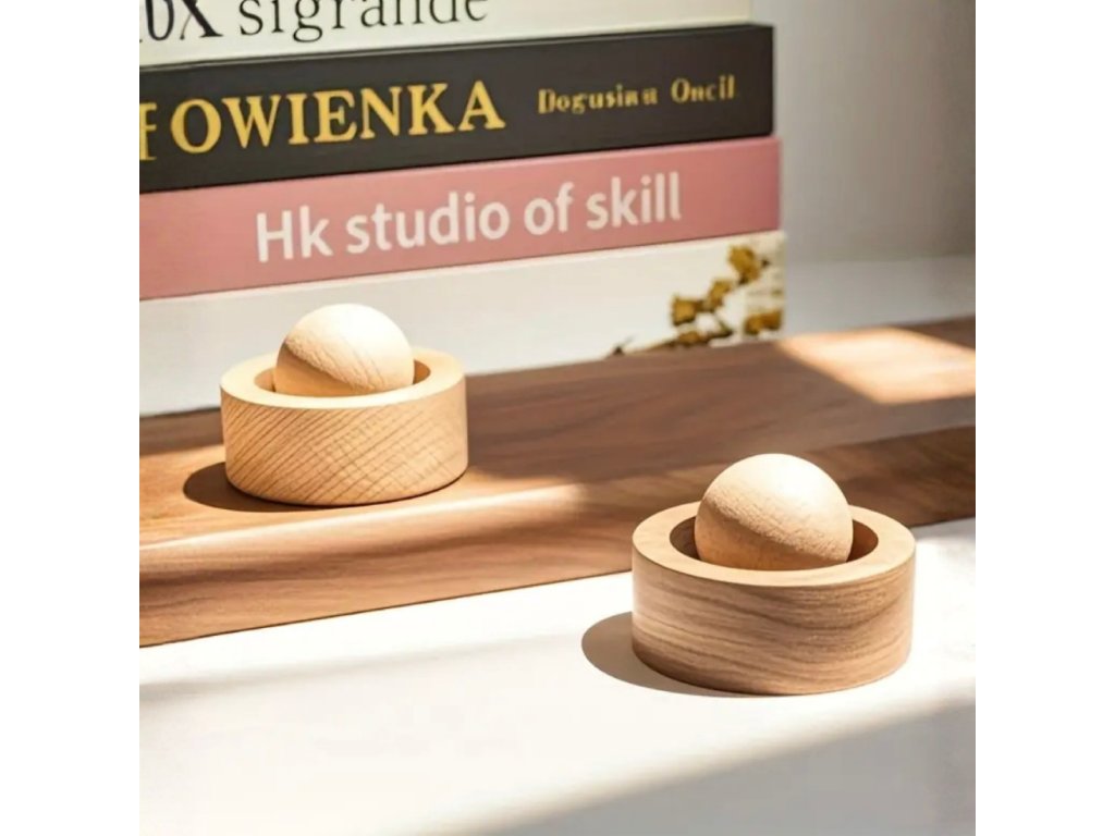 Dřevěná koule pomalu absorbuje esenciální olej a uvolňuje jej do okolí v jemné, přirozené intenzitě.