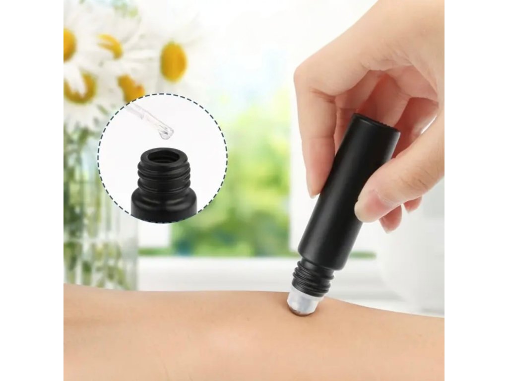 Prázdný roll‑on 10 ml v tmavém skleněném balení s nerezovým aplikátorem je praktický a stylový doplněk pro vaše vlastní esenciální směsi.