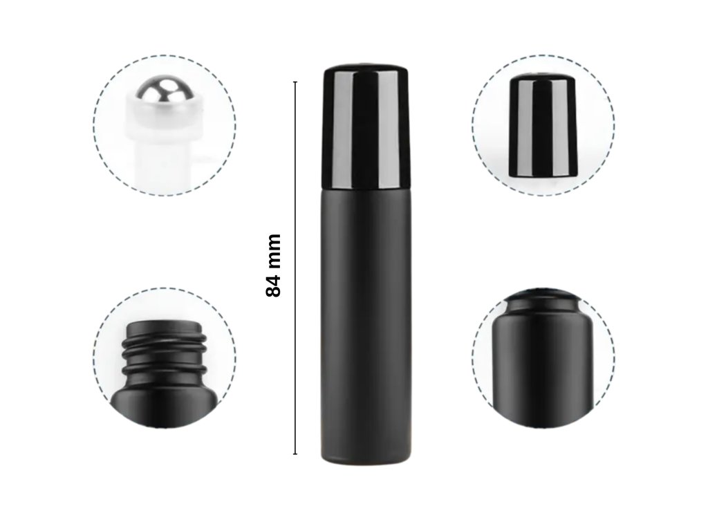 Prázdný roll‑on 10 ml – elegantní tmavé sklo s kovovým aplikátorem, ideální pro vlastní směsi esenciálních olejů.