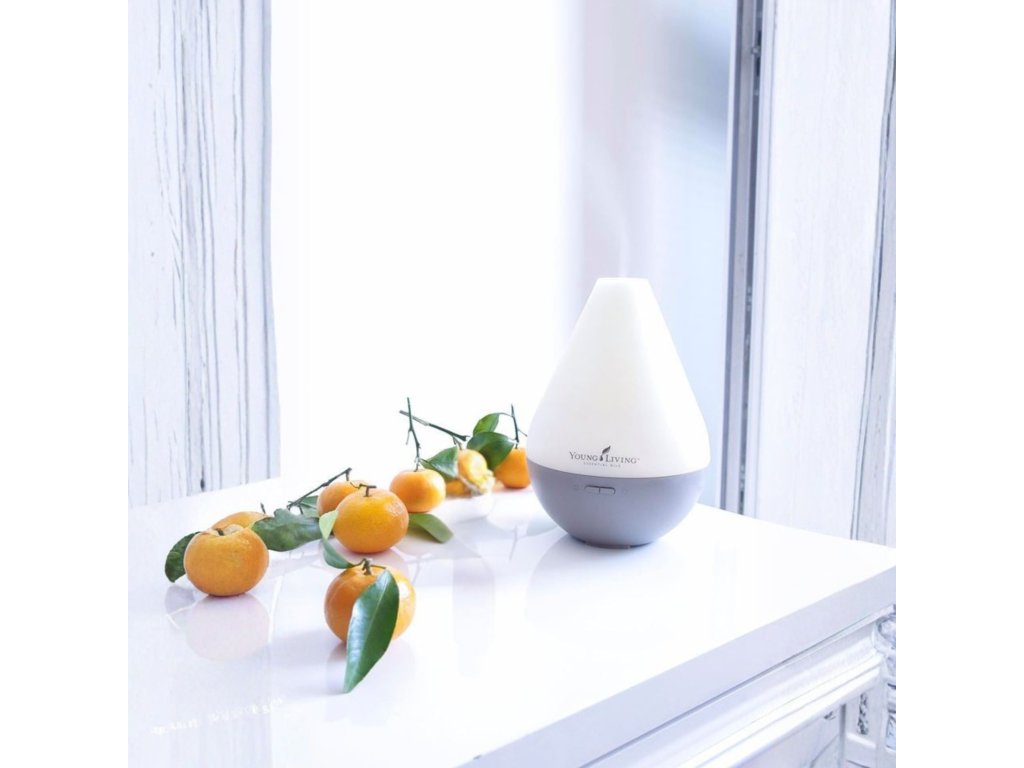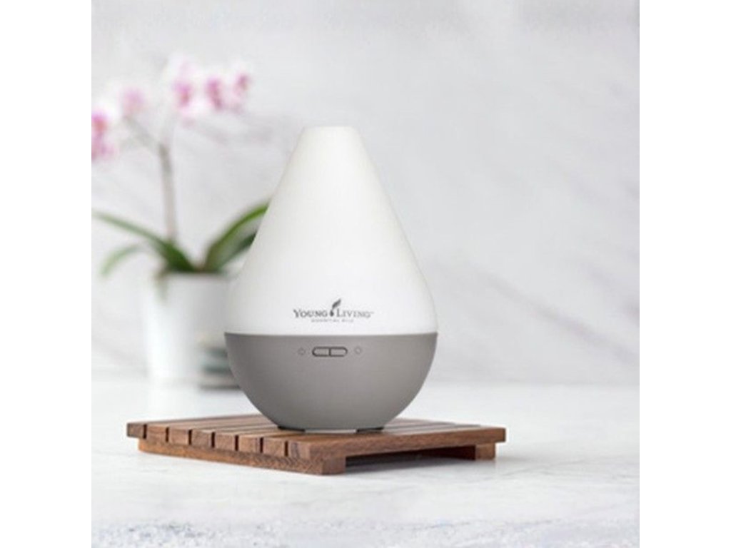 Difuzér Dewdrop od Young Living spojuje elegantní design, tichý provoz a ultrazvukovou technologii, která přeměňuje pár kapek esenciálního oleje a vody na jemnou aromatickou mlhu.