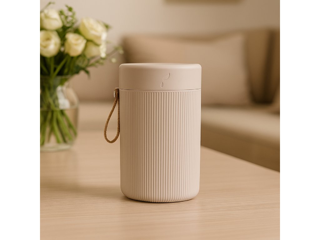 Tento střízlivě krásný difuzér kombinuje moderní nebulizační technologii s praktickým provedením: elegantní vroubkované tělo v přírodní béžové barvě, vhodné kožené poutko pro přenos i inovativní mechanismus proti rozlití.